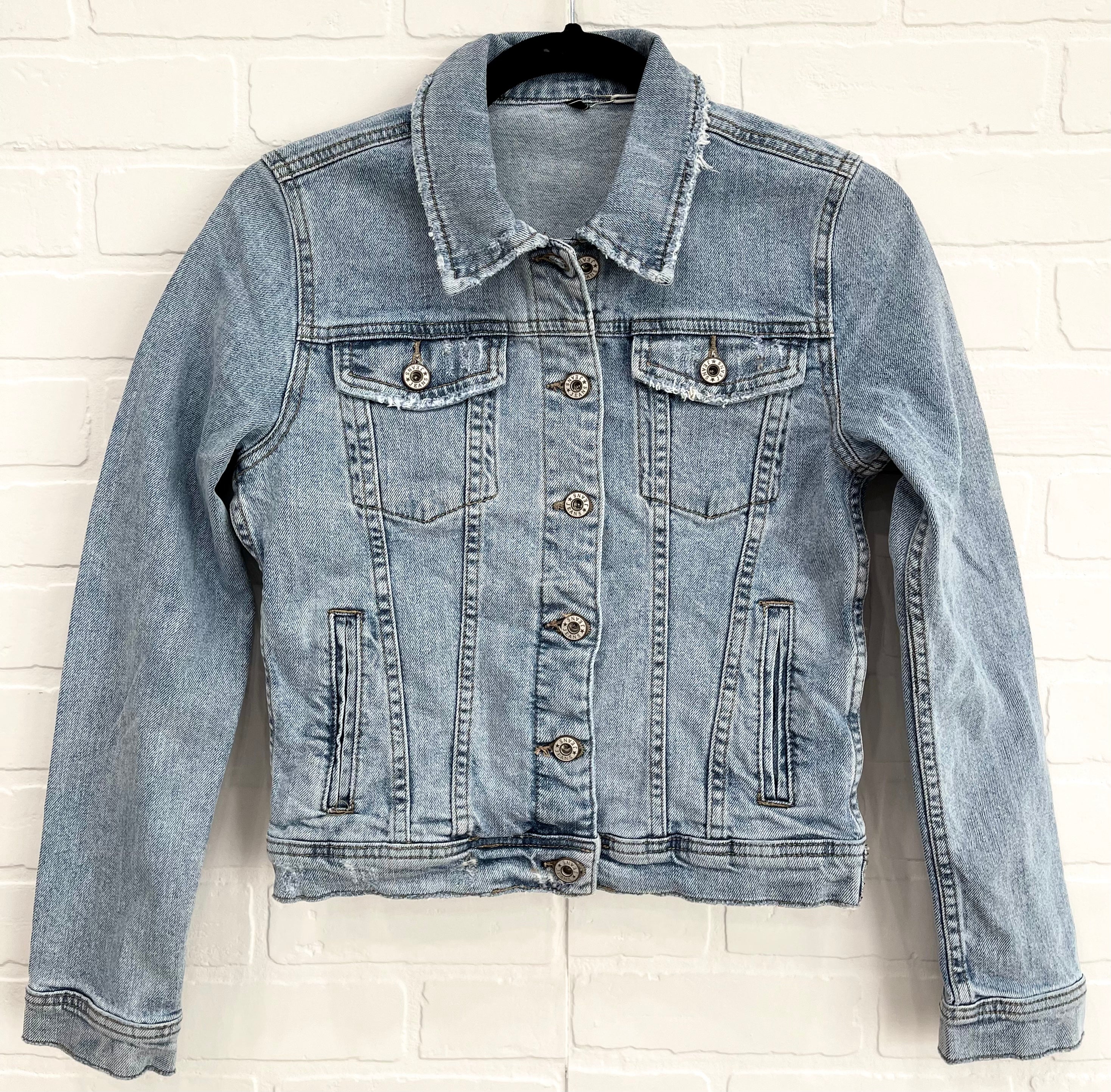 Our 3D denim jacket It is medium blue denim. It is a classic cut jacket—soft and stretchy denim.