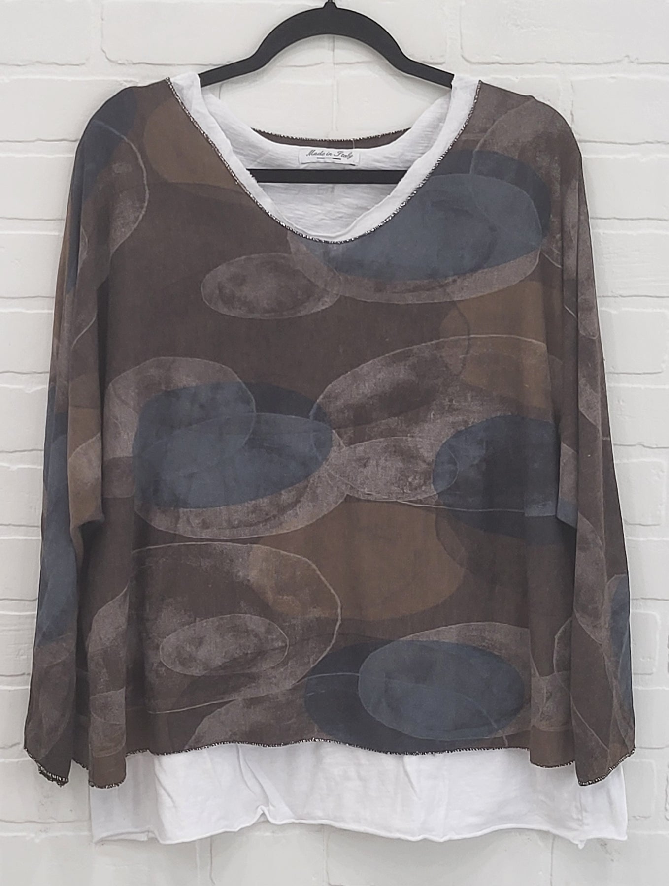 Bring effortless Italian elegance into your wardrobe with this layered floral top, designed in a soft acrylic blend that feels cozy yet lightweight. Made in Italy, this two-piece style features a built-in white underlayer and a relaxed scoop neckline, giving you the look of perfectly styled layers without the fuss.