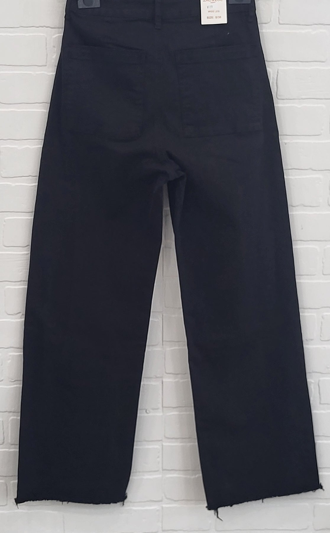 Make a bold statement with these dark denim cropped jeans, a must-have for every modern wardrobe. Featuring a flattering med/high-waisted fit, these jeans enhance your silhouette while providing maximum comfort. The straight-leg design combined with a raw frayed hem adds a trendy and versatile touch, perfect for both casual outings and dressed-up occasions. Made from high-quality denim, these jeans ensure durability and style that lasts. Pair them with a crisp shirt for a polished look or a cozy sweater for a relaxed vibe. These jeans are your go-to piece for creating effortlessly chic outfits year-round.