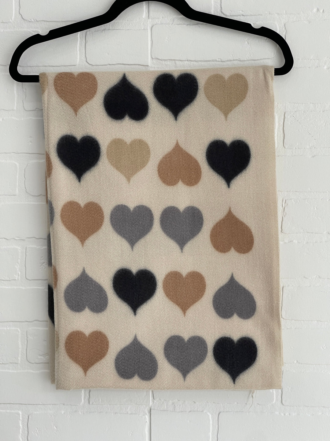 Cozy, soft to the touch cashmere feel. This gorgeous heart scarf will wrap you in warmth and style for the fall and winter months. A must have for your ‘cozy season’ wardrobe.