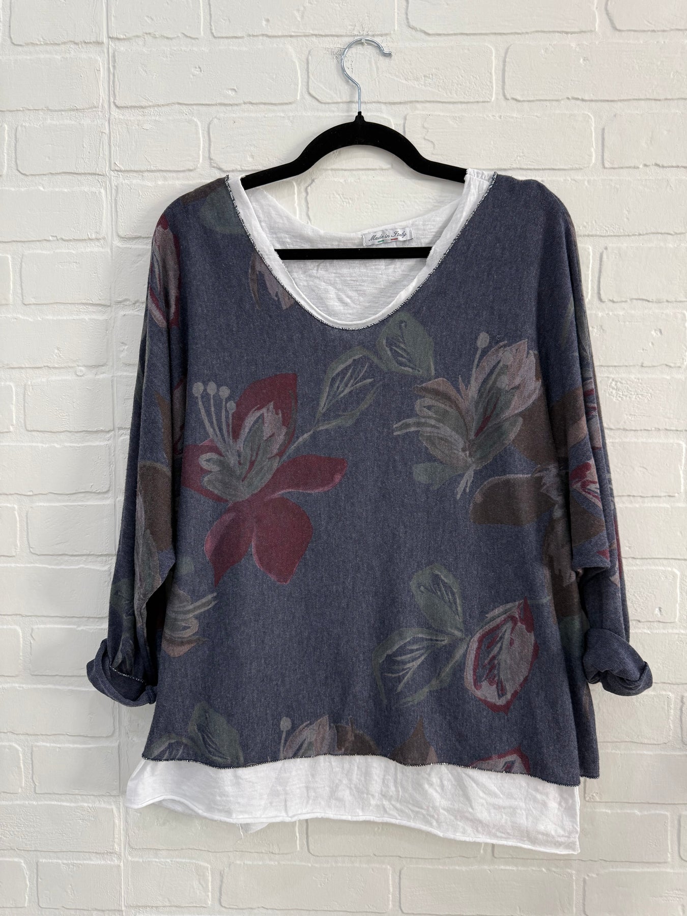 Bring effortless Italian elegance into your wardrobe with this layered floral top, designed in a soft acrylic blend that feels cozy yet lightweight. Made in Italy, this two-piece style features a built-in white underlayer and a relaxed scoop neckline, giving you the look of perfectly styled layers without the fuss.