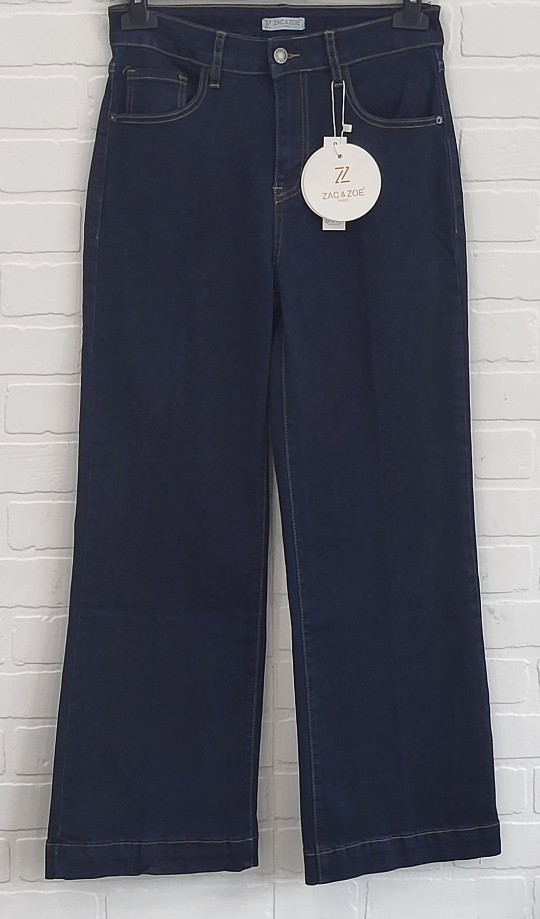Introducing cropped Zack &Zoe jeans Available in chic black and classic denim, these jeans are perfect for embracing the season in style. Featuring a high cuff seam at the bottom, they add a touch of sophistication to any ensemble. Crafted for comfort and versatility, these wide leg jeans are a must-have for the season.