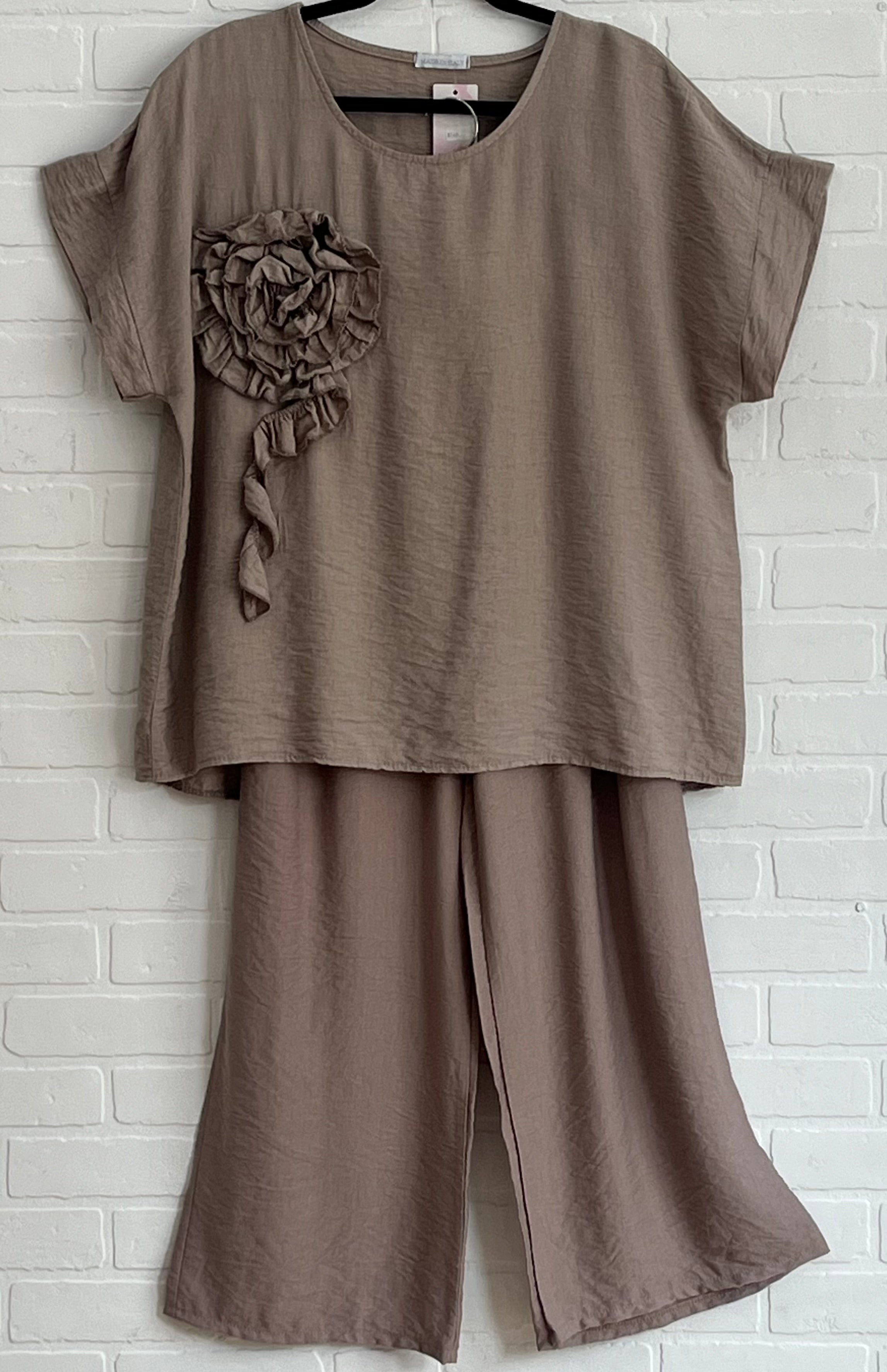 This cozy Melody two-piece knit set features a classic rolled, crew neck top with a relaxed fit, perfect for lounging or casual outings. The top has stylish button details at the cuffs, adding a touch of elegance, while the bracelet sleeve length offers a modern silhouette. The matching pants are designed with a comfortable elasticized waistband and a drawstring for an adjustable fit, ensuring ease and comfort. The overall look is effortlessly chic and perfect for staying cozy while looking stylish.