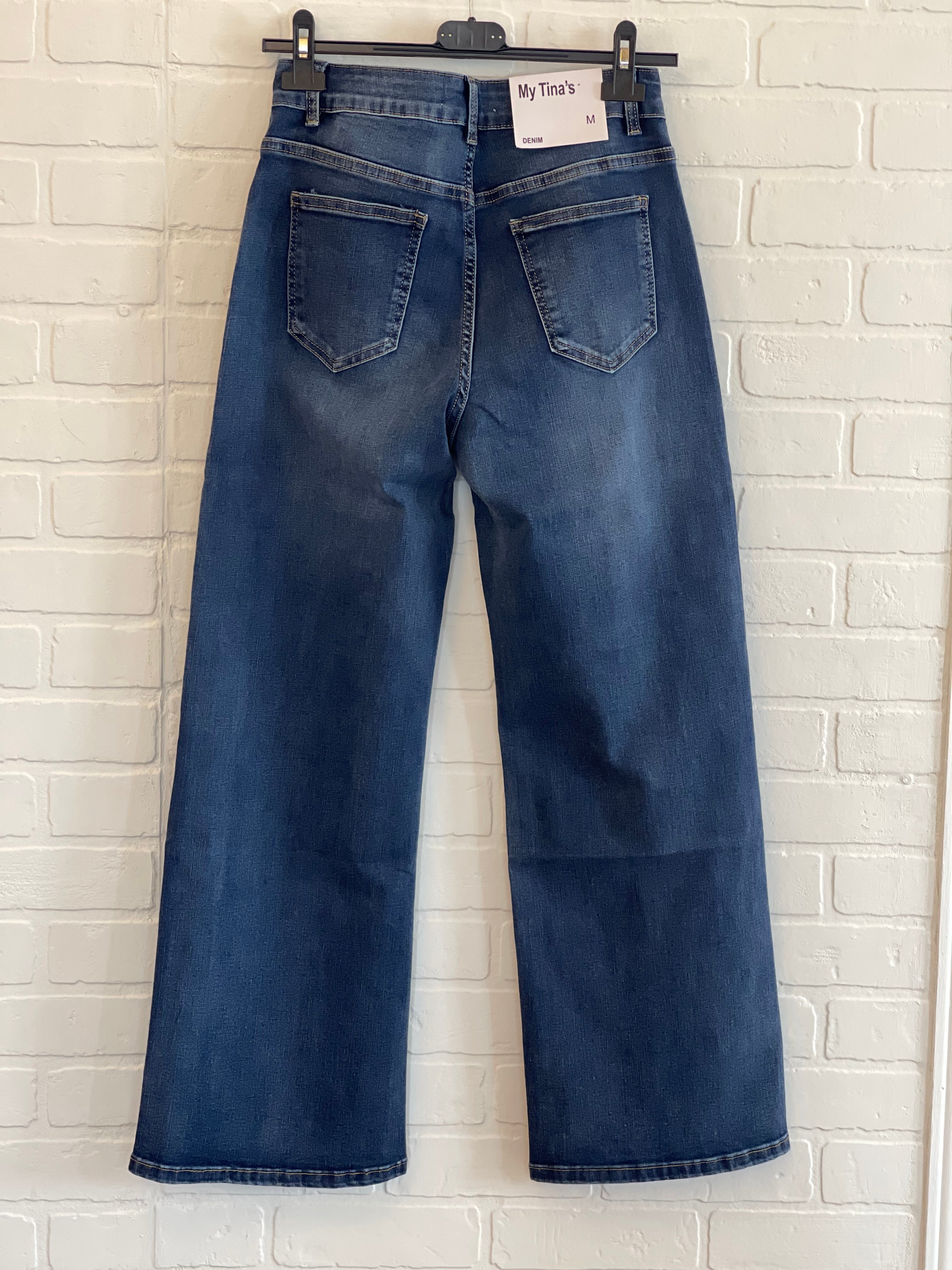 Ce jean noir à jambe large taille mi-haute est très flatteur.