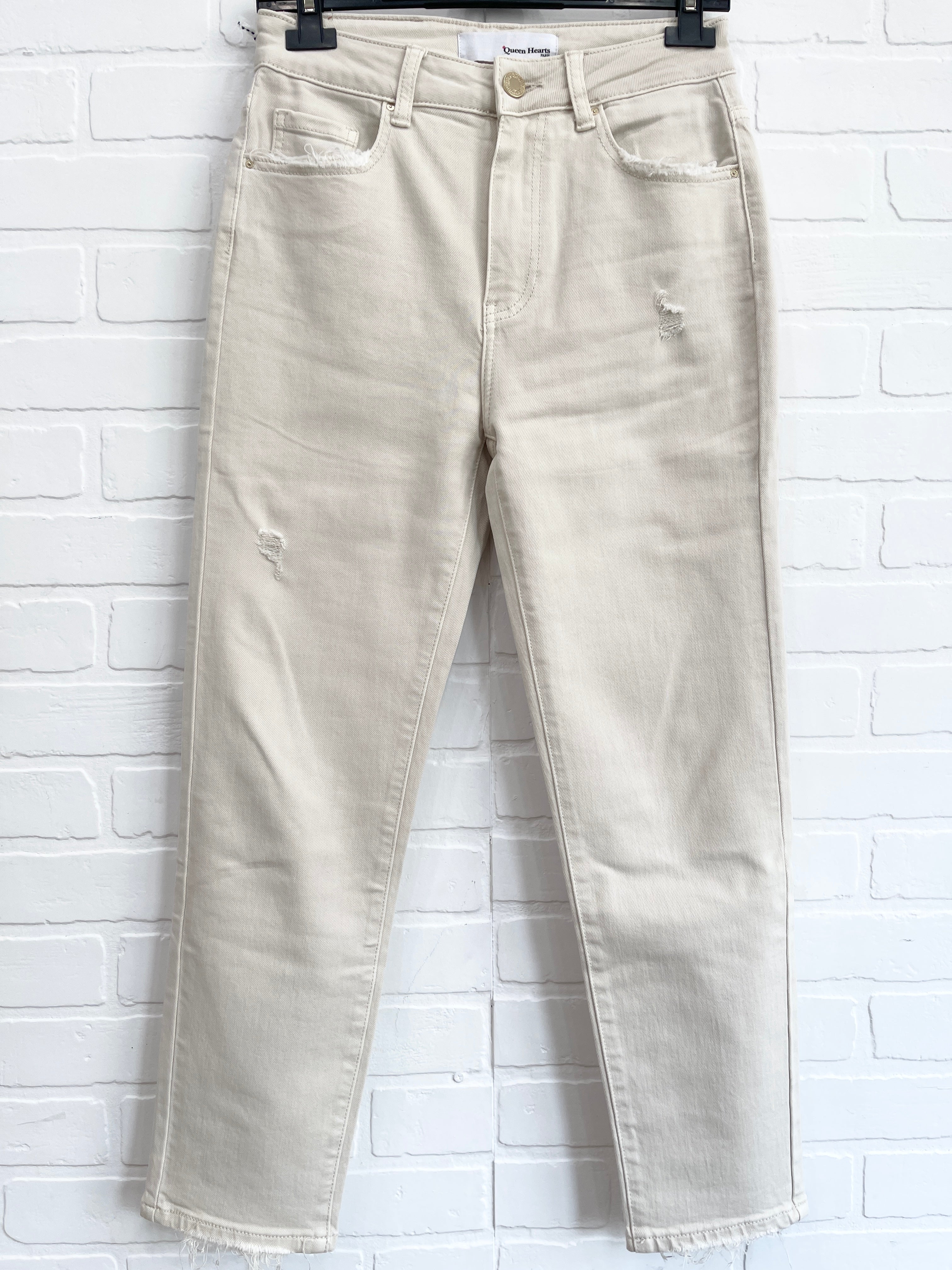 Découvrez le confort et le style ultimes avec notre jean taille haute super extensible, doté d'une jolie bande avec une fermeture à bouton-pression à la cheville. Élevez votre jeu de mode tout en profitant du mélange parfait de flexibilité et d'un design taille haute chic. Que vous soyez habillé de manière habillée ou décontractée, ce jean est votre choix idéal pour un look tendance et confortable. Préparez-vous à ajouter cet ajout polyvalent et tendance à votre garde-robe !