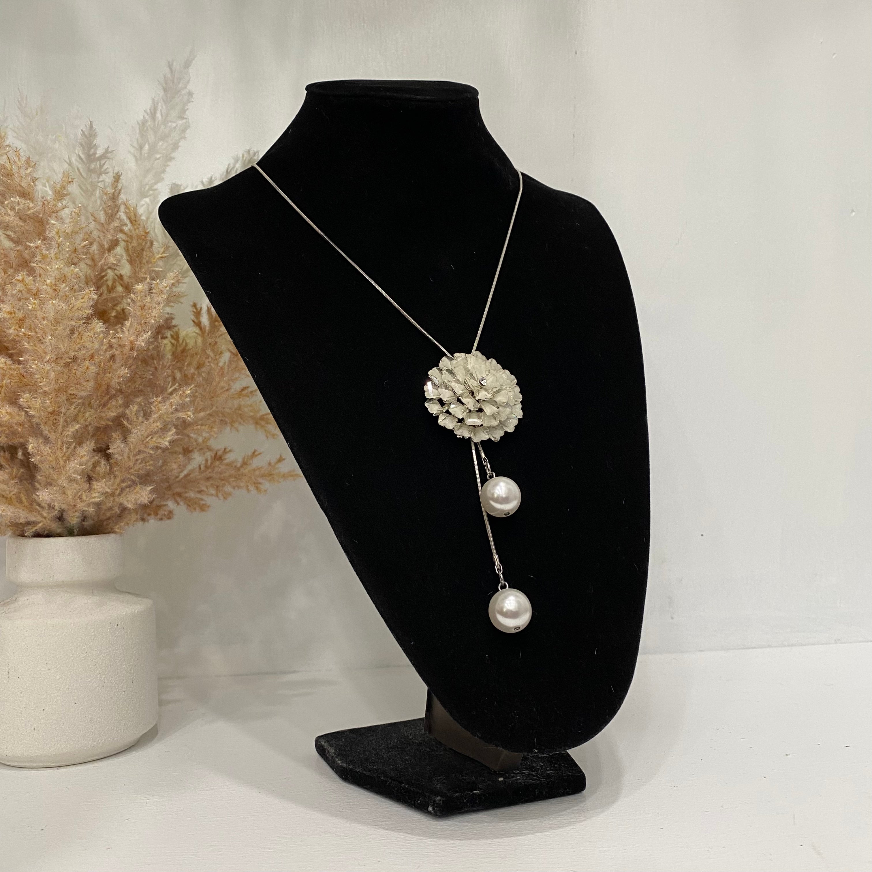 Très long collier en argent avec pierres asymétriques pouvant également être superposé