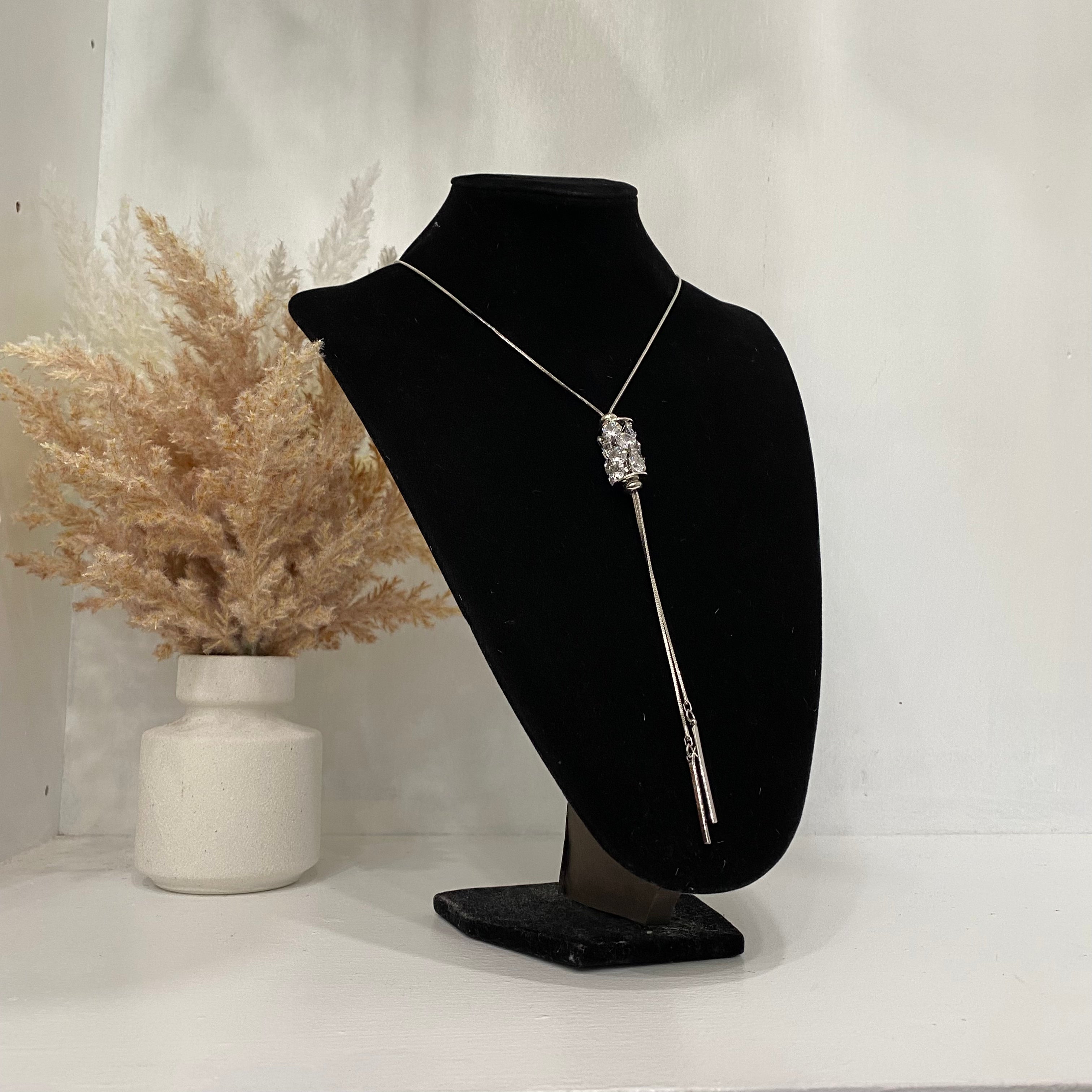 Collier chaîne en argent avec un pendentif clé souligné de pierres précieuses