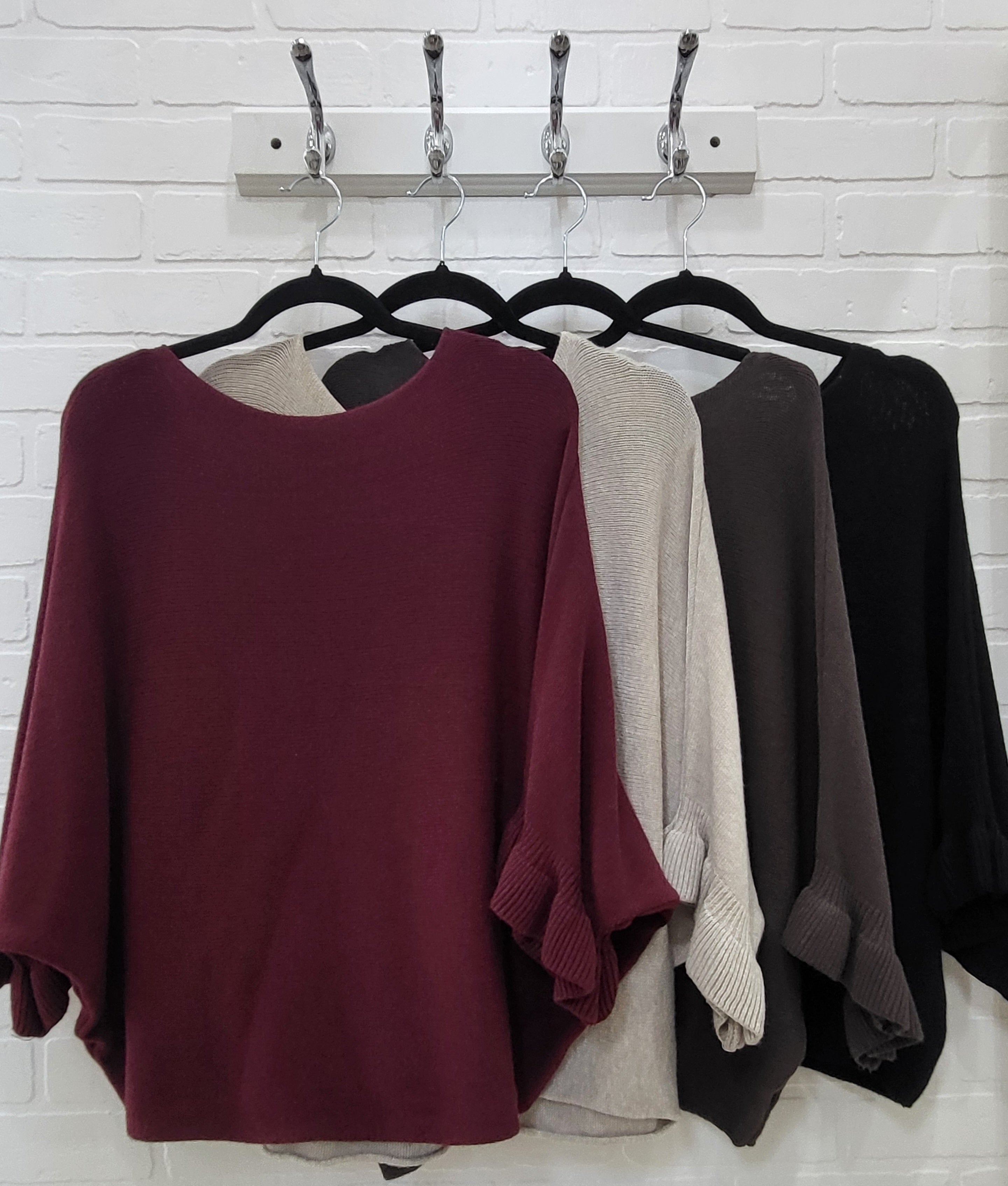 Cable Stiched Ruffle 3/4 Sleeve Knit Top