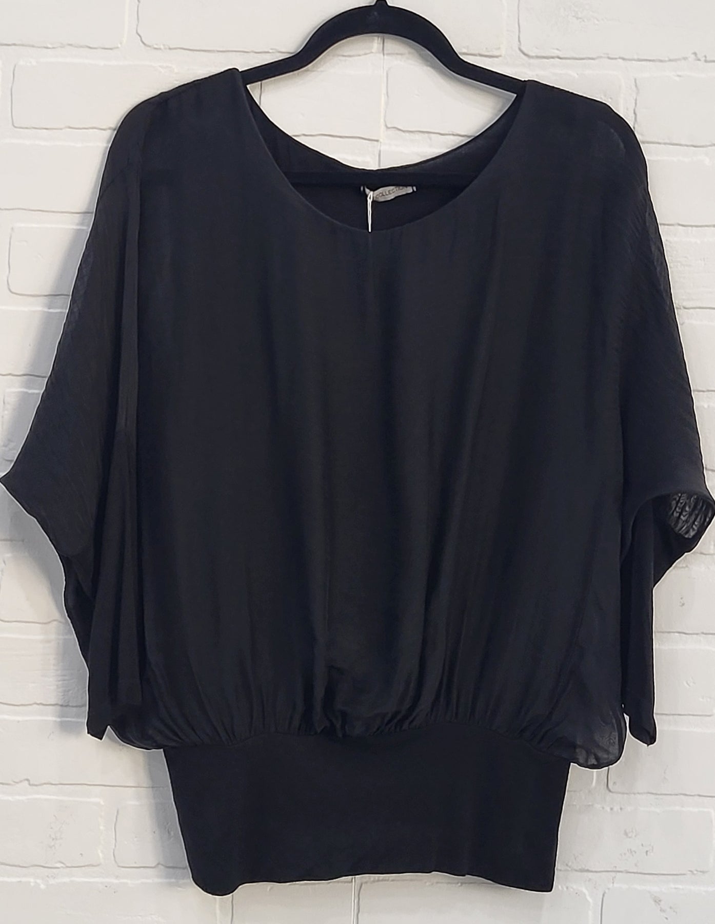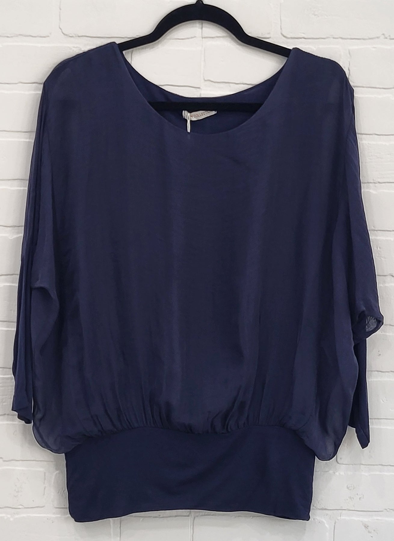 Add timeless elegance to your wardrobe with our Silk Blend Lined Blouse, designed in Italy for effortless sophistication. Crafted from a soft silk blend with a fluid drape, this blouse features a lightweight lining for comfort and coverage. The relaxed batwing sleeves and wide scoop neckline create a flattering silhouette, while the stretch hemline ensures an easy fit that stays in place.