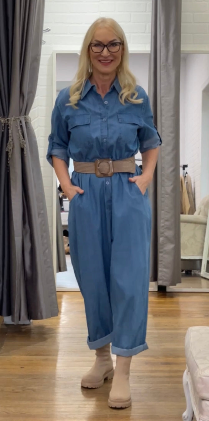Présentation de notre combinaison en jean polyvalente, un mélange harmonieux de style et de confort qui redéfinit la mode moderne. Confectionnée avec une attention méticuleuse aux détails, cette combinaison comporte des manches longues avec un coussinet unique qui vous permet de les plier sans effort pour plus de style et de commodité. Le tissu denim super léger et doux assure un port confortable tout en dégageant une ambiance chic et décontractée.