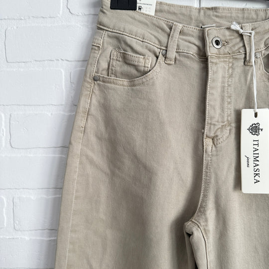 Get ready to upgrade your wardrobe with our latest wide-leg jeans, now available in fresh spring colors: light gray and taupe. Embrace the hottest trends of the season while enjoying unparalleled comfort and stretch in these must-have jeans. Perfect for any occasion, from casual outings to stylish gatherings, these jeans offer a relaxed yet chic silhouette that's bound to turn heads. Don't miss out on the opportunity to add these versatile essentials to your spring and summer collection!
