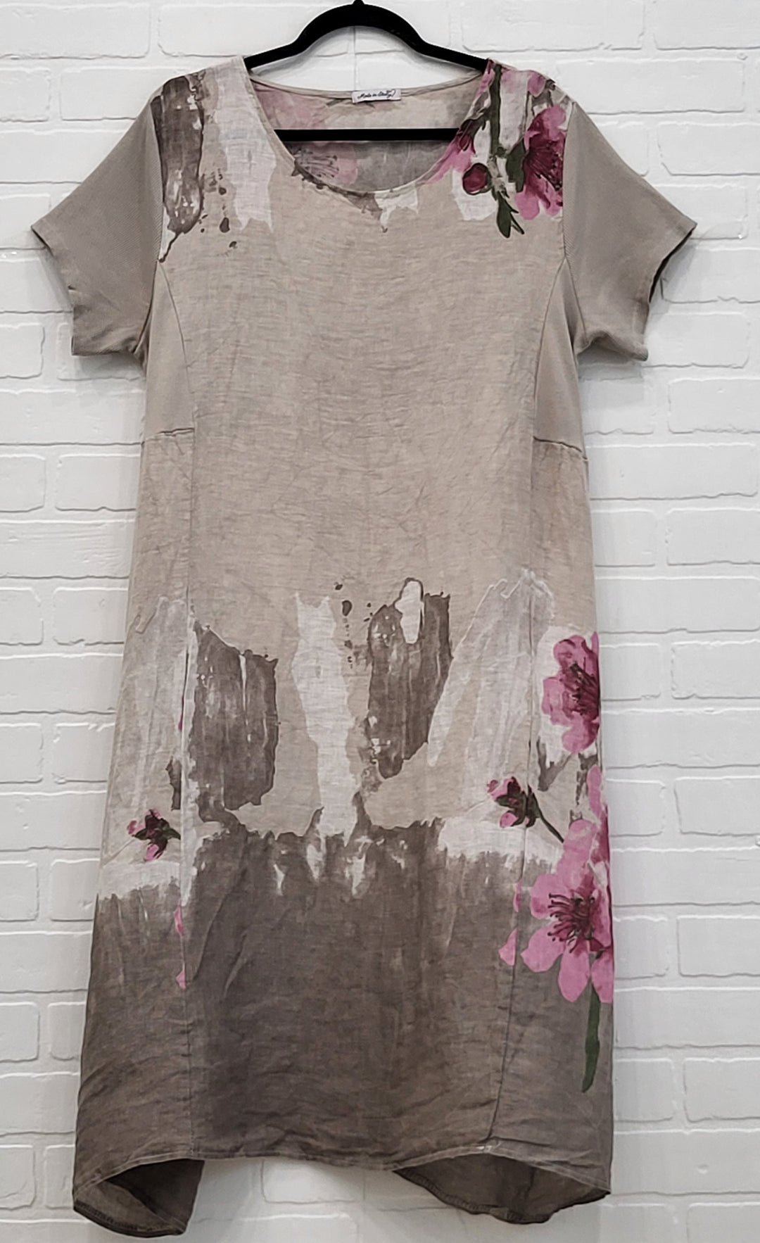 Step into effortless elegance with this floral linen dress designed for comfort and style. Made from 100% breathable linen, this dress features a relaxed fit, short sleeves, and a scoop neckline. The artistic floral print and watercolor-inspired details create a soft, feminine look that’s perfect for spring and summer.